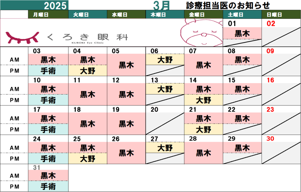 3月 担当医のお知らせ