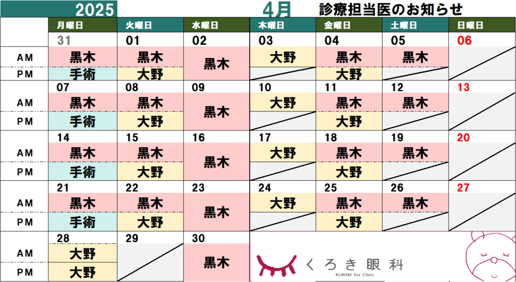 4月 担当医のお知らせ