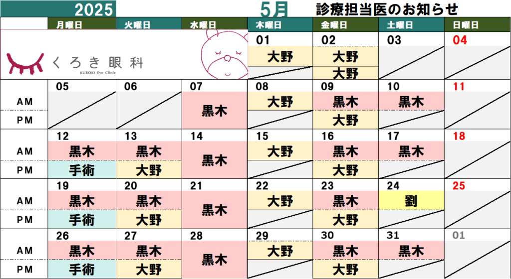 5月 担当医のお知らせ